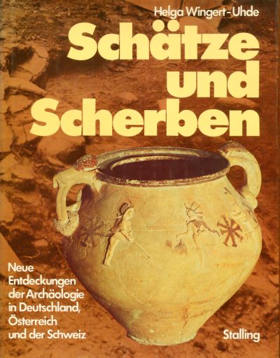 Wingert-Uhde, Helga: Schätze und Scherben. Neue Entdeckungen der Archäologie in Deutschland, Oesterreich und der Schweiz. Einleitung von Karl J. Narr. Vorwort von Rudolf Pörtner. Oldenburg: Gerhard Stalling 1977. Lex.-8°. 192 S., zahlreiche, z.T. farbigen Abbildungen im Text und auf Tafeln, gebunden (Einband leicht verzogen; gut erhalten)