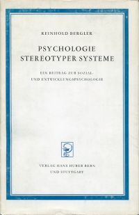 Bergler, Reinhold: Psychologie stereotyper Systeme. Ein Beitrag zur Sozial- und Entwicklungspsychologie. Bern/Stuttgart: Huber 1966. Gr.-8°. 318 S., Bibliographie, Leinen (Einband leicht verzogen; Schutzumschlag berieben und mit Gebrauchsspuren; sonst gut erhalten)