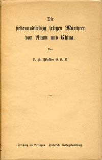 Walter, Hilarius: Leben, Wirken und Leiden der siebenundsiebzig seligen Märtyrer von Anam und China. Freiburg i.Br.: Herder 1903. 8°. XII, 324 S., Frontispiz, Leinen mit umlaufendem marmoriertem Schnitt (Bibliotheksexemplar; Bibliotheksvermerke; Stempel auf Titelblatt; Schutzumschlag mit leichten Randläsuren; sonst altersgemäss gut erhalten)